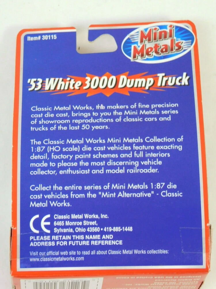 Classic Metal Works, the makers of fine precision cast die cast, brings to you the Mini Metals series of showroom reproductions of classic cars and trucks of the last 50 years. The Clasic Metal Works Mini Metals Collection of 1:87(HO Scale) die cast vehicles feature eacting detail, factory paint schemes and full interiors made to please the most discerning vehicle collection, enthusiast and model railroader.Â