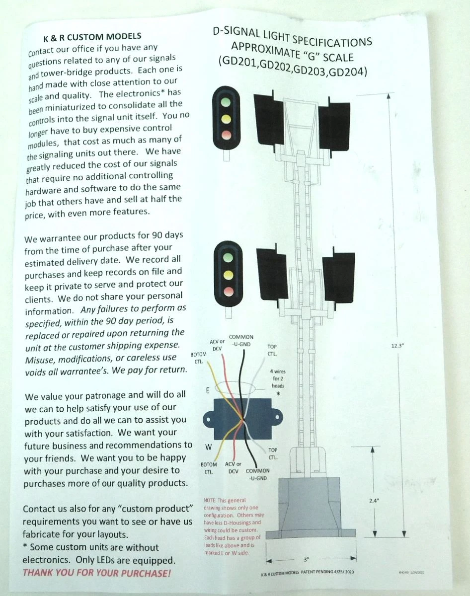 K&R Custom Models GD204 G Scale Four Head Signal
