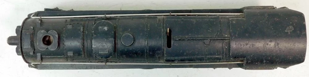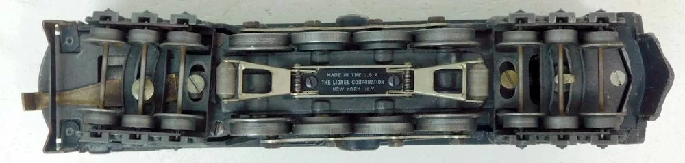 A vintage postwar-era Lionel S-2 stean turbine, Lionel Lines #681, Variation ‘A’. Comes with tender 6020W. No damage on locomotive or tender. Minor rust spots on axles. Clean paint and markings. Locomotive tested and working normally, E-unit cycles between forward-neutral-reverse. Also features working headlight and good running gear. Makes a metal clicking noise when moving. Recommend service/cleaning of motor and running gear before heavy use. No whistle in tender.