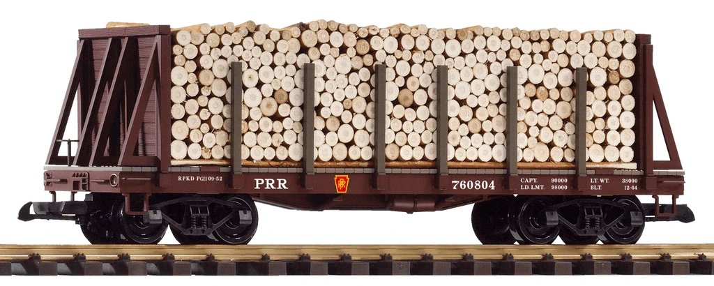 38755 Pennsylvania Railroad (PRR) Bulkhead Flat w/ Pulpwood Load (G-Scale)