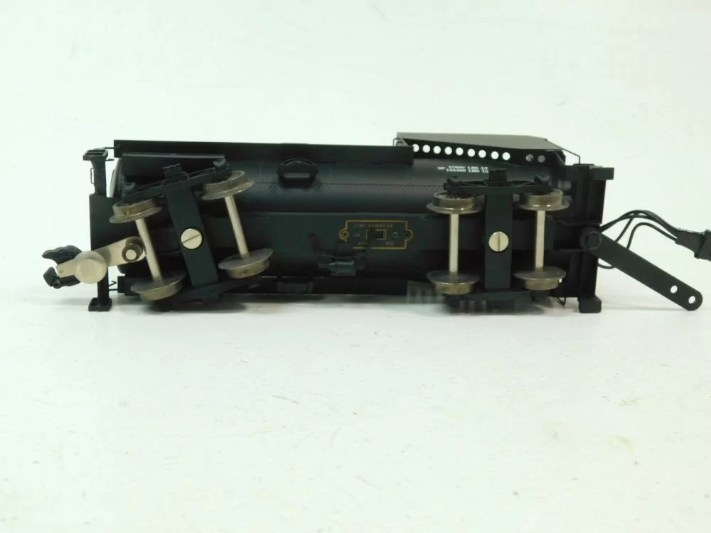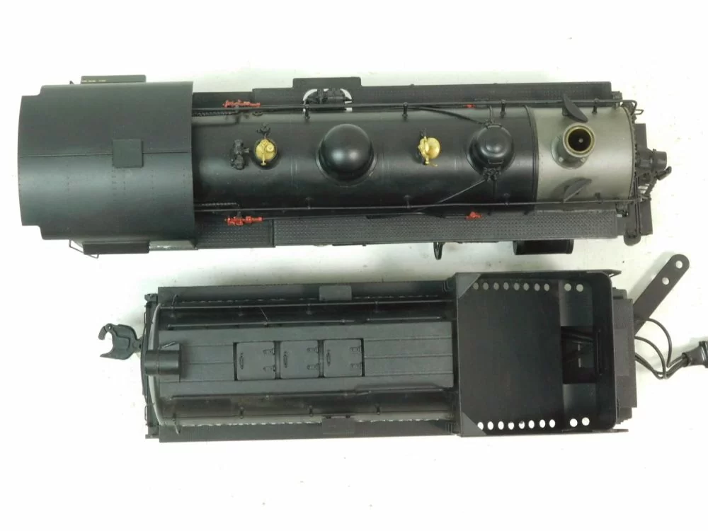 This brass O scale 3-rail engine is in Very Good Condition from a smoke-free home/collection. There appear to be no missing parts. There is minimal wear on the pickup rollers. The driving wheels have some build-up on them. This item is tested and found to have a grounding issue that shorts the track. There is no box included. There appear to be no paint chips.