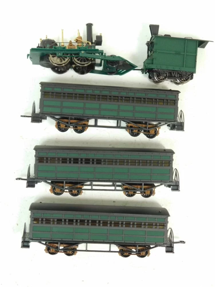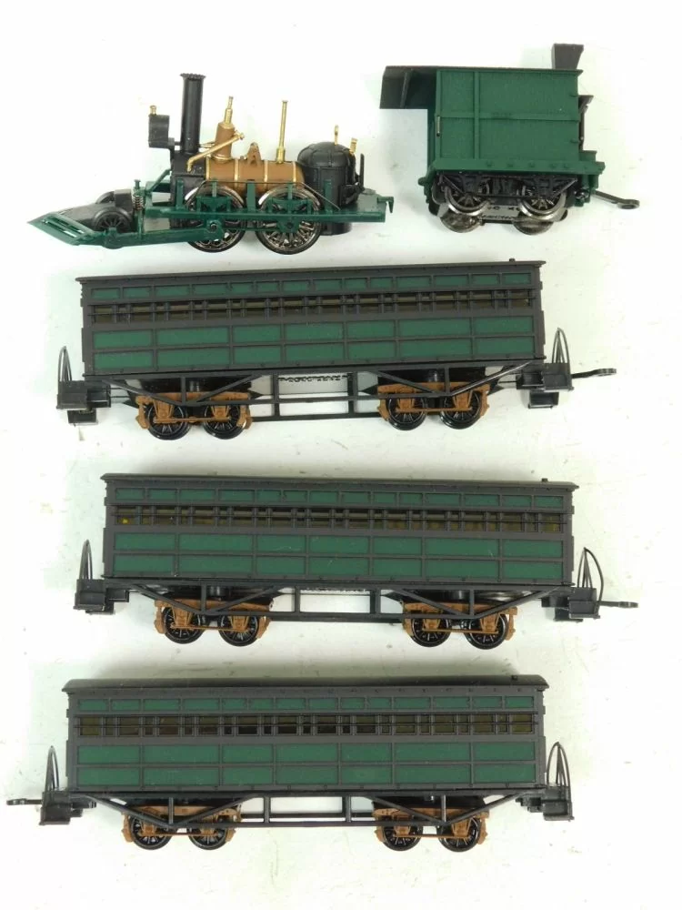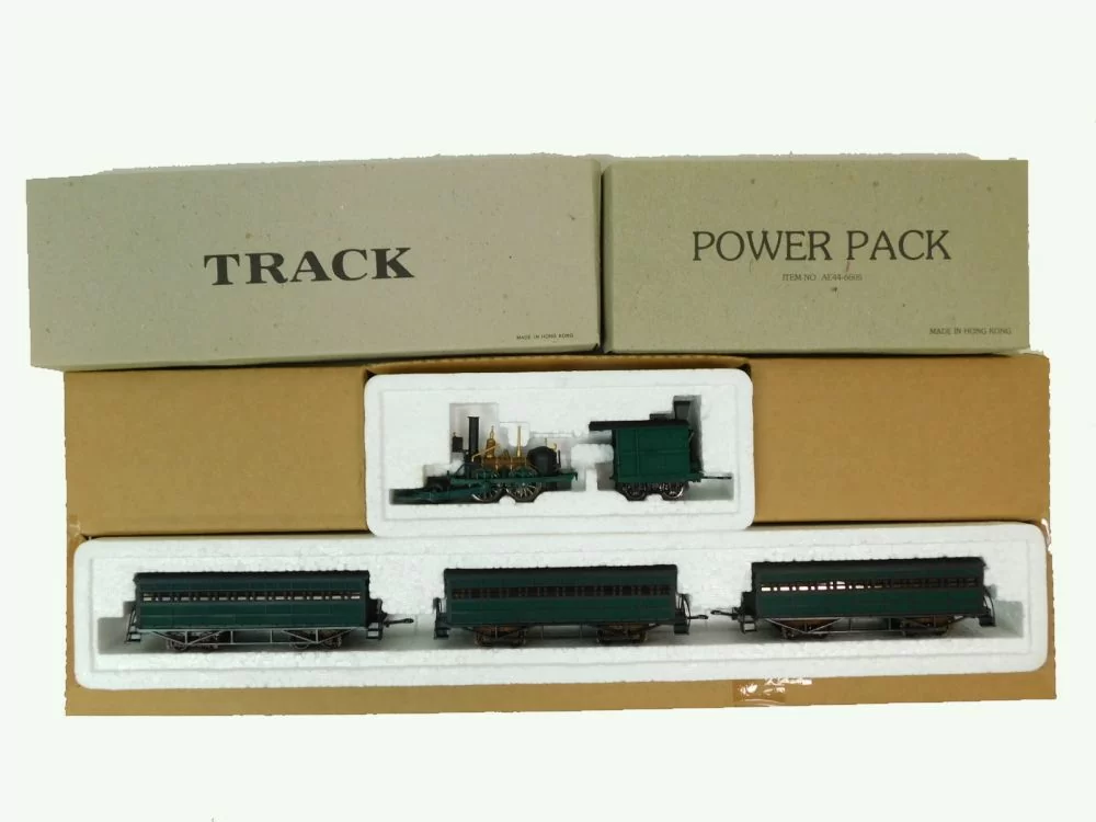 This HO scale train set is in Excellent Condition from a smoke-free home/collection. There are no missing parts. There is a minute mark on the pilot of the engine. There is minimal wear on the wheels. There is minimal wear and marks on the track. The power supply is tested and found to be fully functional. The motorized tender runs without issue. The handrails on the coaches are a little bent. This item is stored in its original packaging. The box has a little wear and tear on it.