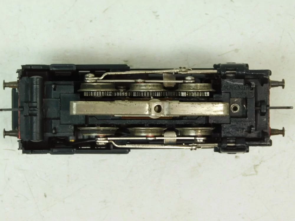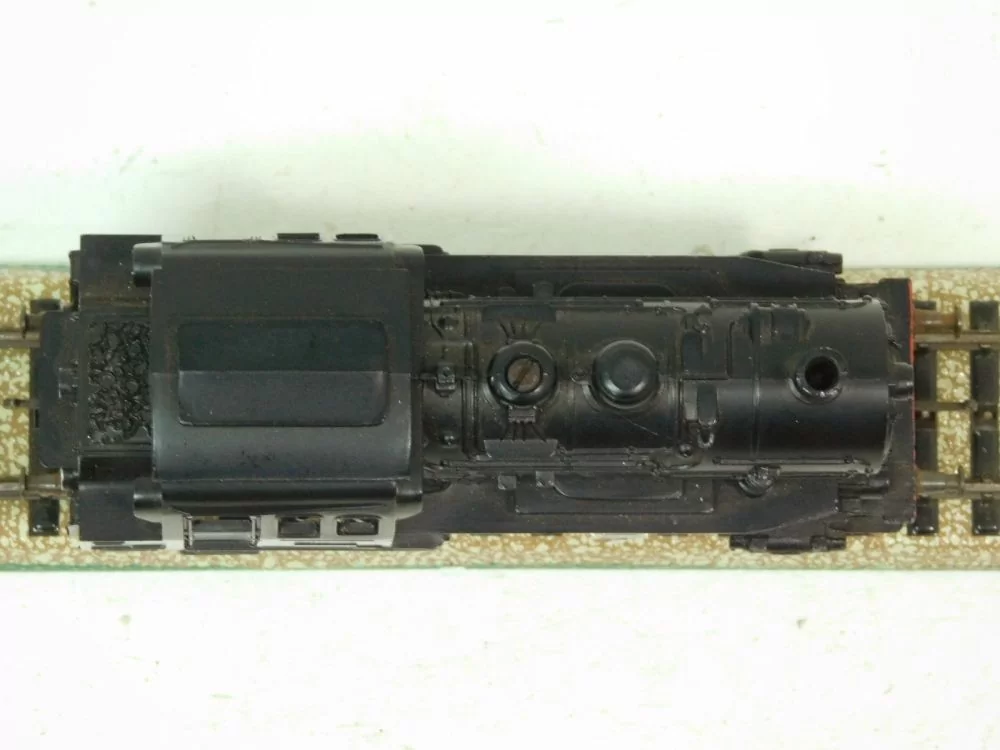 This vintage HO scale 3-Rail engine is in Very Good Condition from a smoke-free home/collection. There are no missing parts. There are minute marks on the shell. There is a little rust on the metal side/valve rods. This item is tested. The lights shine brightly. The traction tires are intact. The engine runs forward well. It is recommended that this engine be serviced before any serious running takes place. This item is stored in its original packaging which has minor shelfwear.