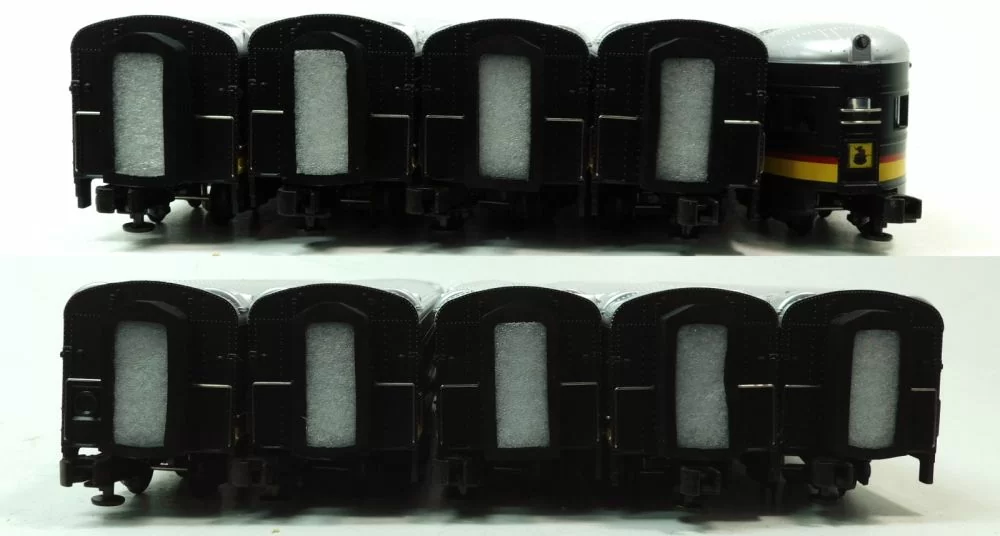 This set of 5 O scale passenger cars is in Excellent Condition from a smoke-free home/collection. There are no missing parts. There are no scuffs on the paint anywhere. The wheels and pickup rollers show little wear. All lights and operating couplers function as intended. This set is stored in its original packaging.