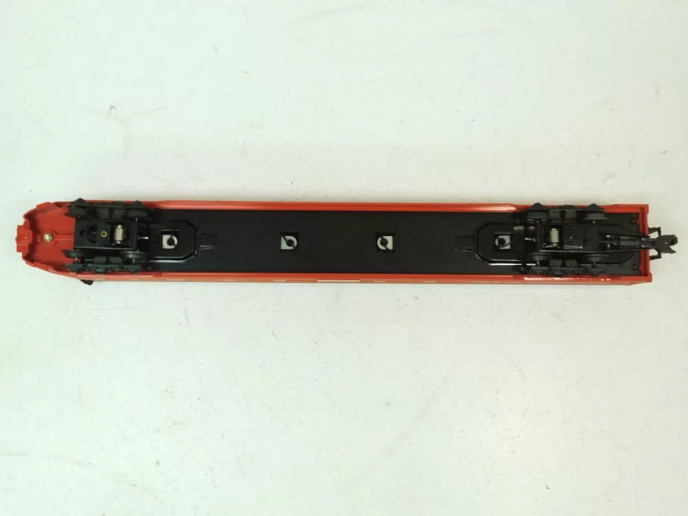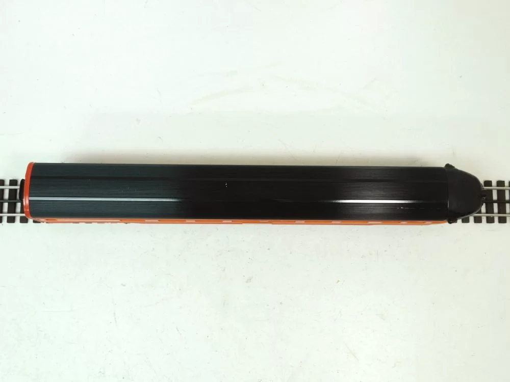This O scale 20″ observation car is in Very Good Condition from a smoke-free home/collection. There are no missing parts. There are minute marks on the roof and sides. The operating coupler functions as intended. The lights shine brightly when powered. Wheels show some wear, but spin freely.Â