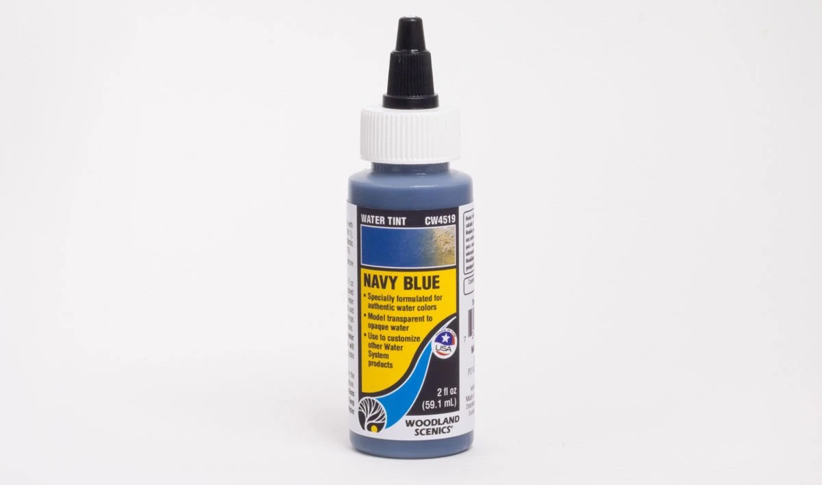 One (1) Two (2) fl oz (59.1 mL) bottle of Water Tint Navy Blue for Woodland Scenics Water products.
